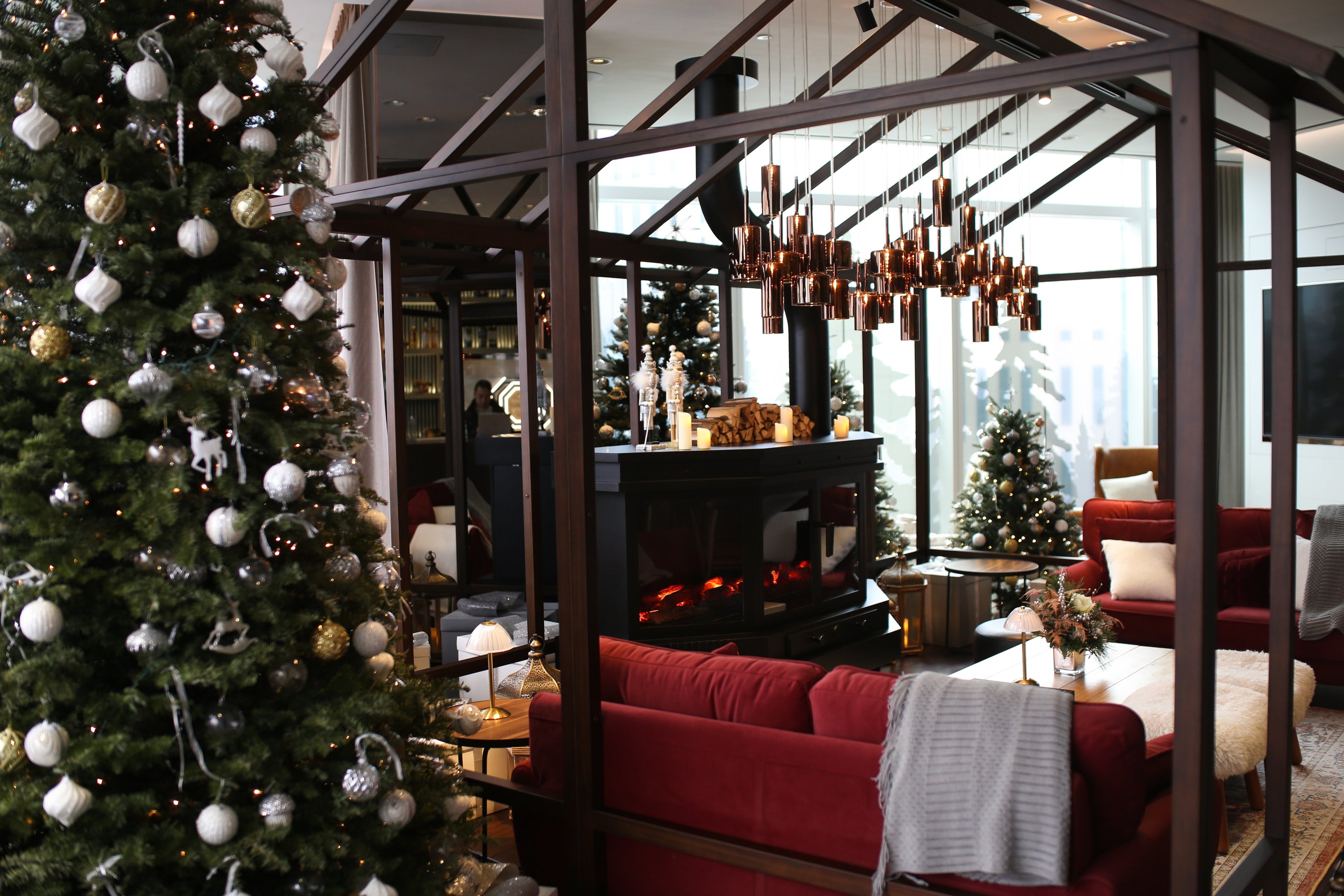 Audemars Piguet打造出和暖的冬日渡假小木屋,不同高度的 Noble Fir 散發著淡淡松香,濃烈的聖誕氣氛飄逸至屋內的每一個角落。我們用心地把每一枝松葉都飾上別出心裁的ornaments,細心查看,更能找到不少富有趣味的吊飾與燈飾。